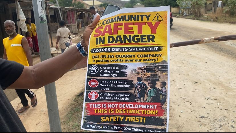 Residents of ACO Phase 2 in Lugbe, Abuja, staged a protest early Saturday morning over the activities of a Chinese mining company, accusing it of endangering lives and property within the community.