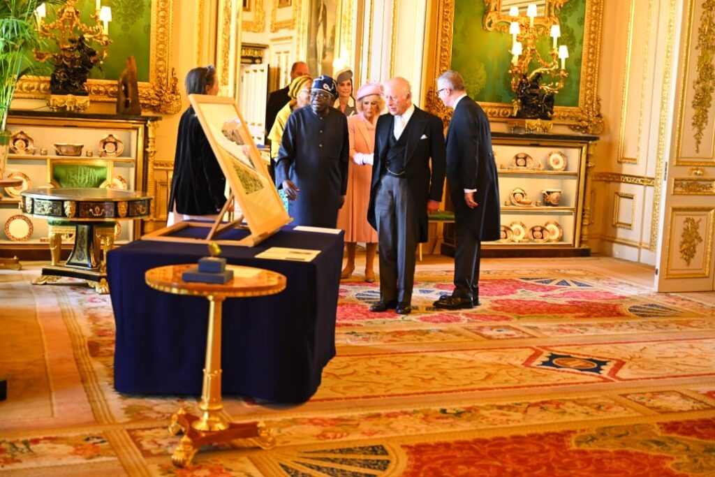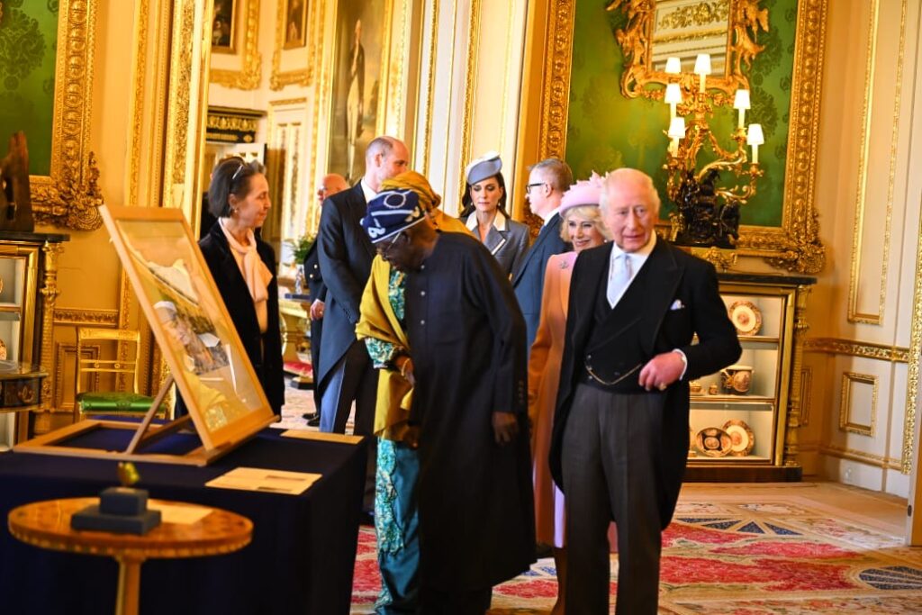 From the inspection of the Guard of Honour, President Tinubu and Mrs Tinubu were shown a special display of items relating to Nigeria, from the Royal Collection in the Green Drawing Room at Windsor Castle.