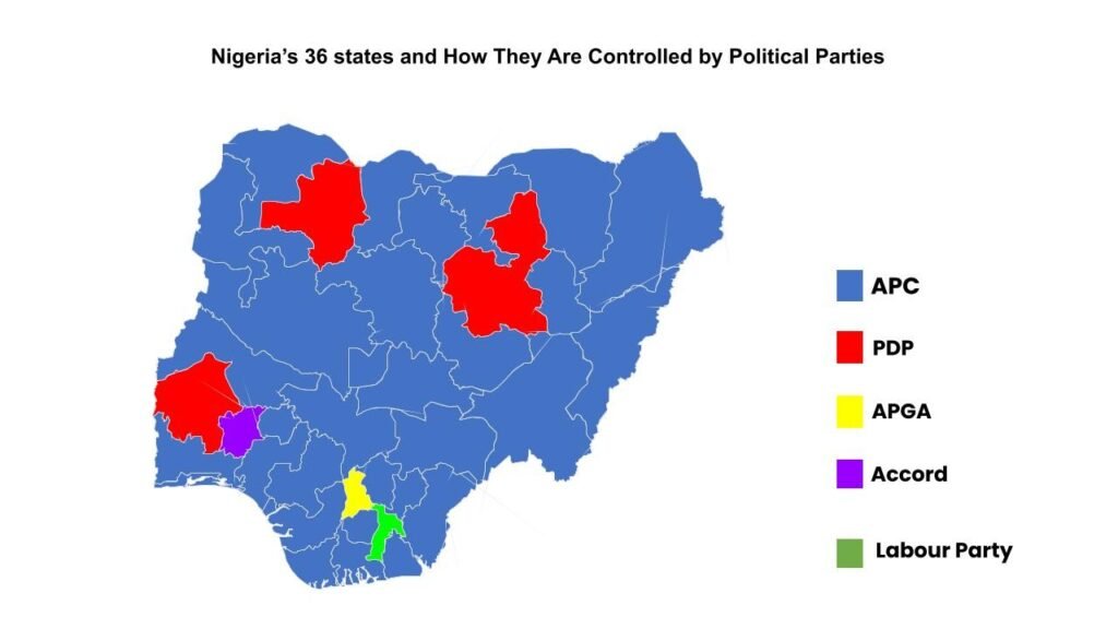 With Fintiri’s defection, the APC now governs 30 out of Nigeria’s 36 states, leaving the PDP with control of only Oyo, Bauchi, and Zamfara. Other states remain under smaller parties: Anambra is governed by the All Progressives Grand Alliance (APGA), Abia by the Labour Party, and Osun by the Accord Party.