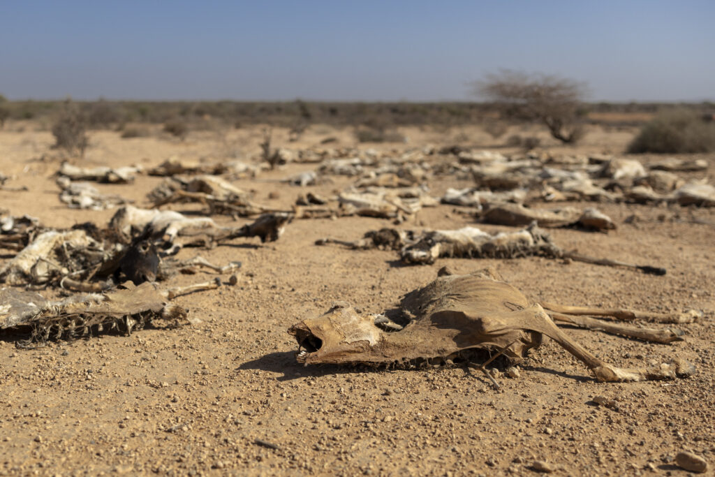 In drought-hit northeastern Kenya, villagers have been forced to drag their dead livestock to distant fields for burning to keep the stench of death and scavenging hyenas away from their homes.