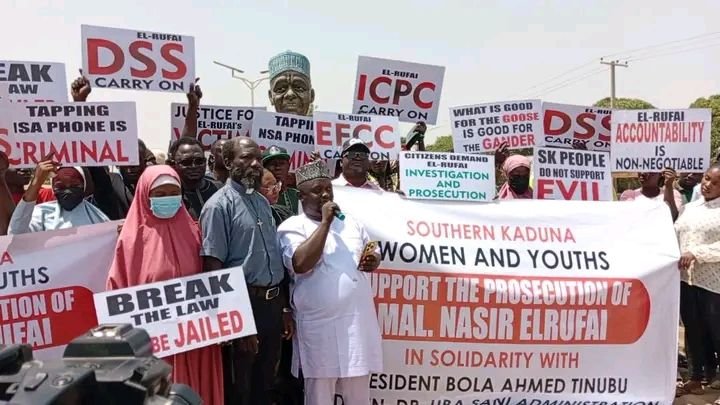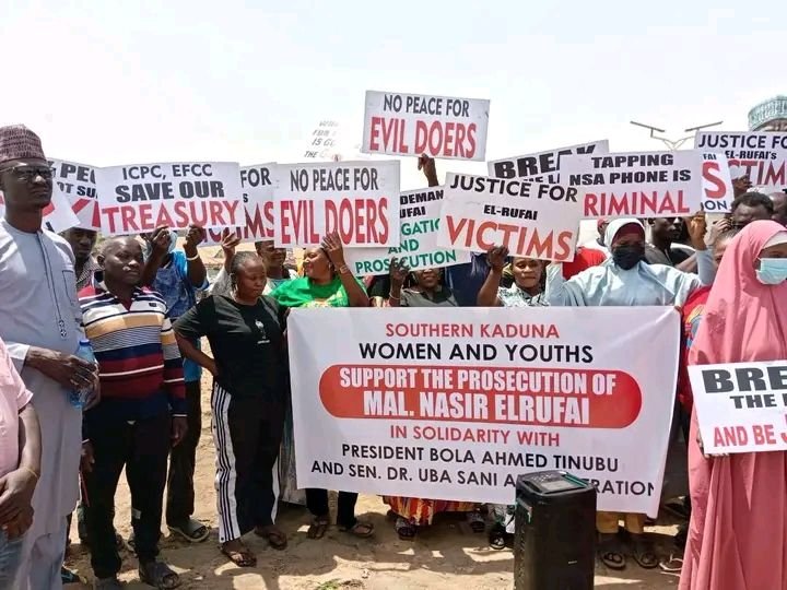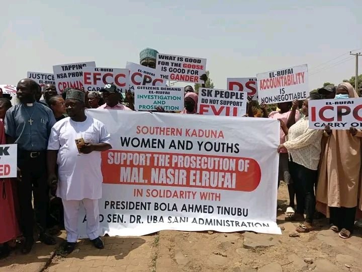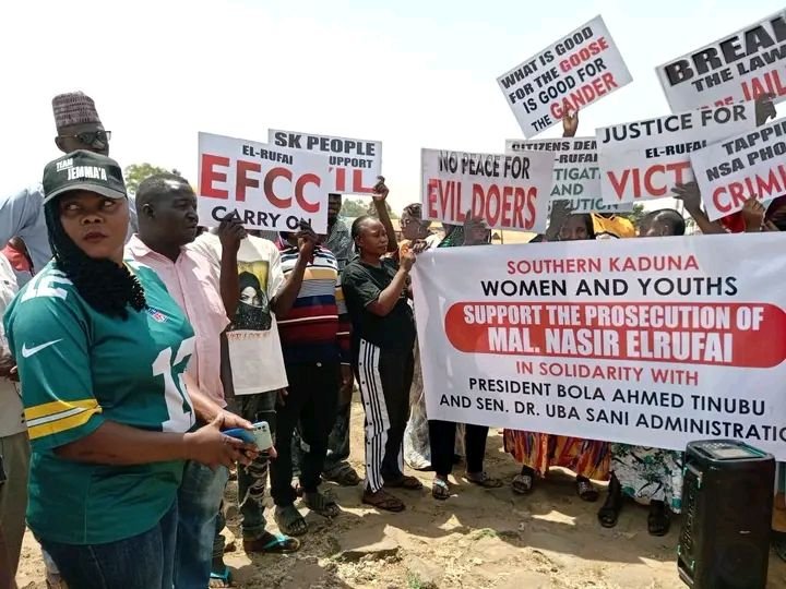 Women and youths affiliated with the All Progressives Congress Unity Forum in southern Kaduna State have hit the streets to rally in support of the ongoing investigation into former Governor Malam Nasir El-Rufai.